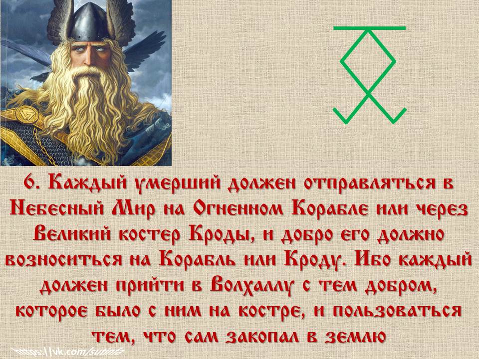 ✅ 6. «Каждый умерший должен отправляться в Небесный Мир на Огненном Корабле или через Великий костер Кроды, и добро его должно возноситься на Корабль или Кроду. Ибо каждый должен прийти в Волхаллу с тем добром, которое было с ним на костре, и пользоваться тем, что сам закопал в землю».
