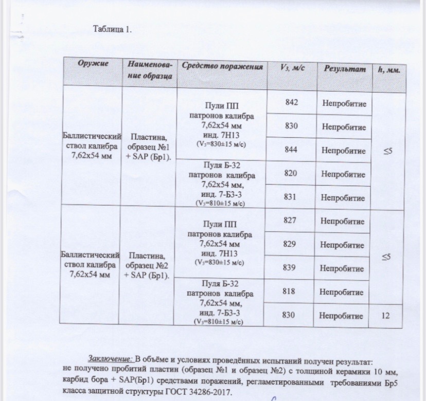 Вид испытаний: испытания по оценке защитных свойств бронепластин в соответствии с требованиями, предьявляемыми к защитным структурам Бр5 класса ГОСТ 34286- 2017.
