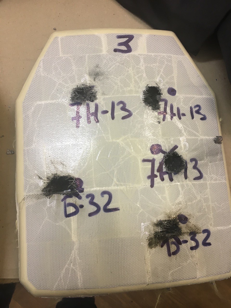 •Для защиты от воздействия ударников со стальным, стальным- термоупрочненным (ТУС) или керамическим ( карбид вольфрама )сердечником используется плита из Карбида бора с арамидной подложной. Плита собирается из элементов 50*50*10 мм и выдерживает многократное воздействие ударников, в отличии от новомодного веяния с запада на монолитные плиты.