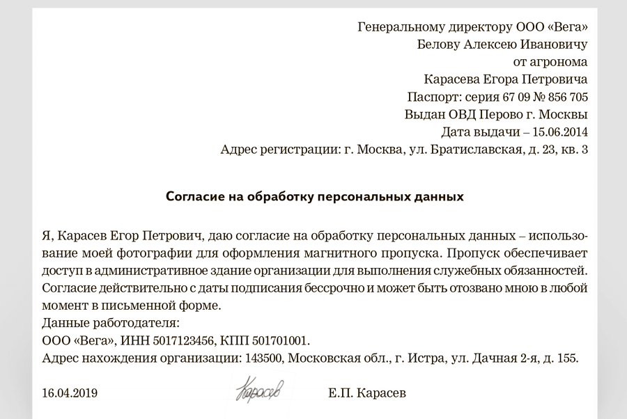 Запретить использовать персональные данные
