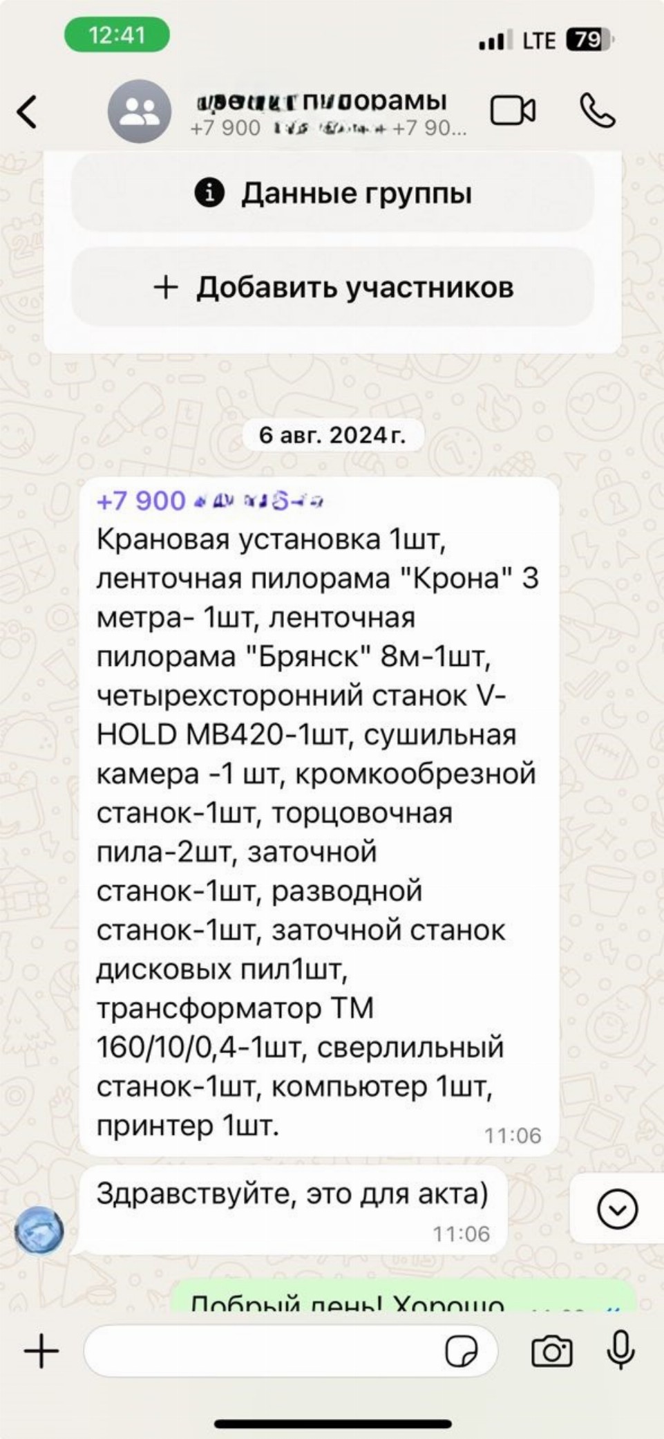 Запрос информации ватсап