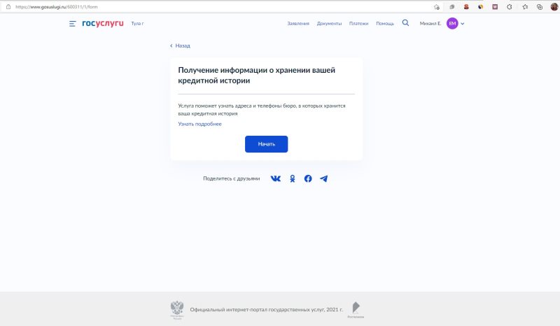 Запрос в бки госуслуги