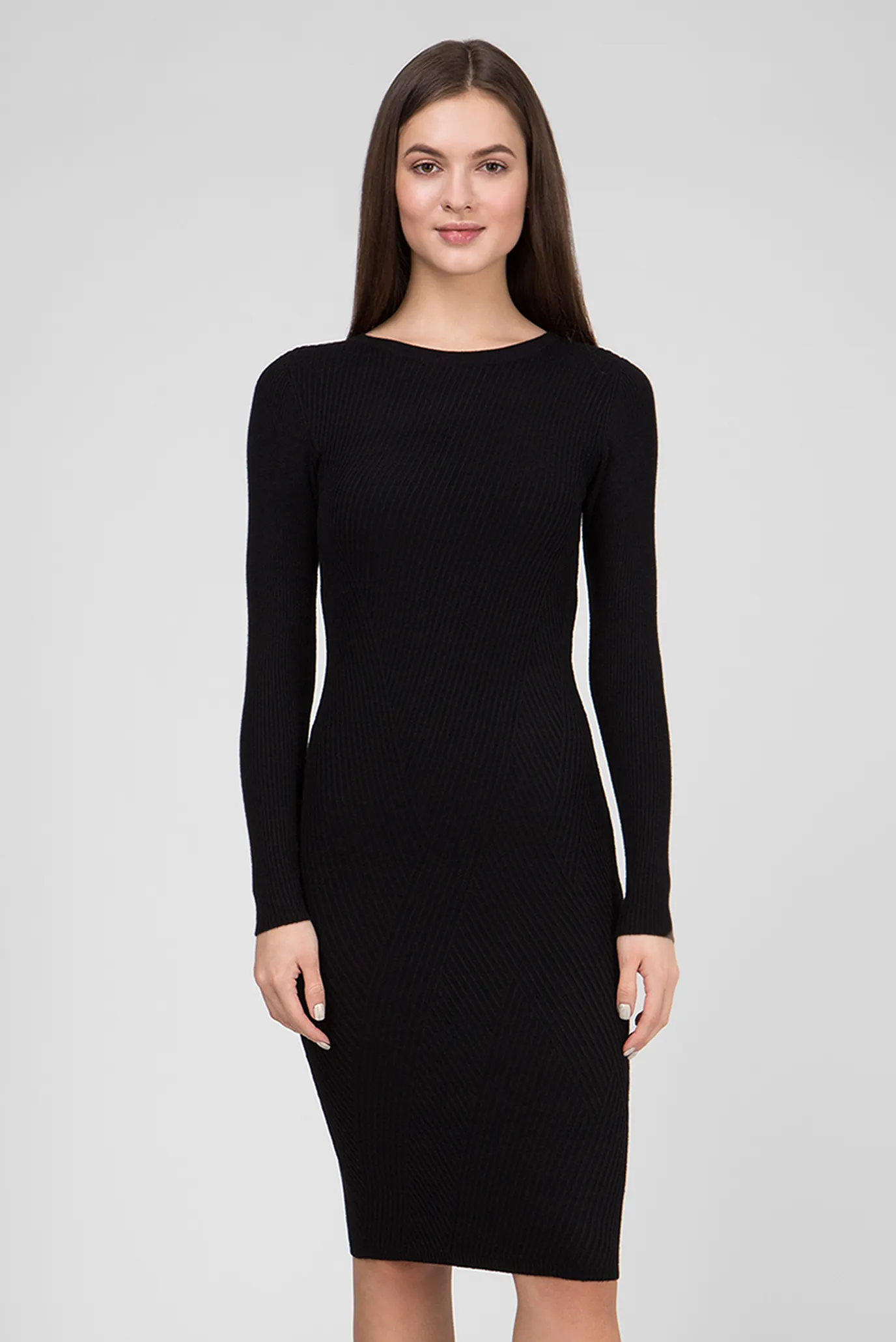 Состав: полиэстер 100% Цвет: серый Платье исполнено в корейском трикотаже, силуэт облегающий, с глубоким вырезом на спине. На спине шнуровка лентой