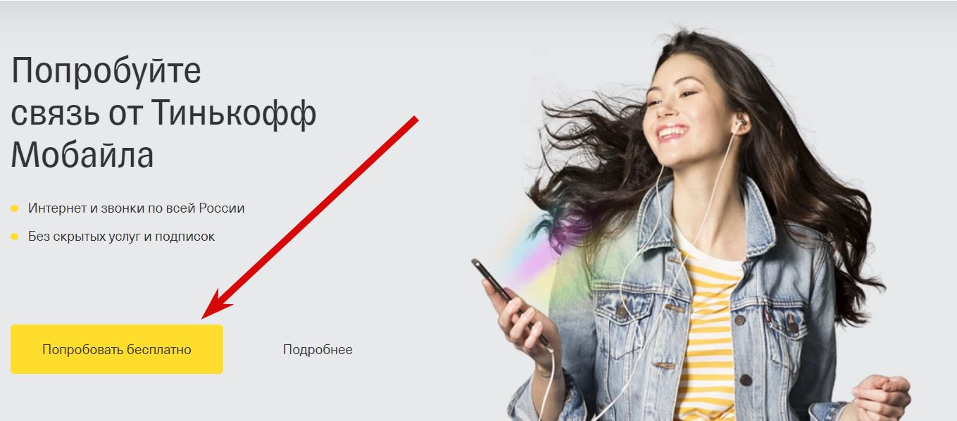 - Тыкаем на сайте "Попробовать бесплатно" и заполняем контактную информацию. Лучше всего переходить на тинькоф-мобайл со старым номером, чтобы получить 1000 рублей на баланс. Для этого можно использовать какую-нибудь ненужную симку.