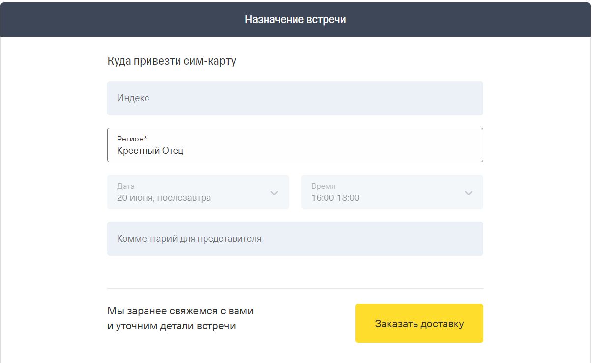 - Далее указываем адрес, по которому вам привезут вашу сим карту и жмем "Заказать доставку"