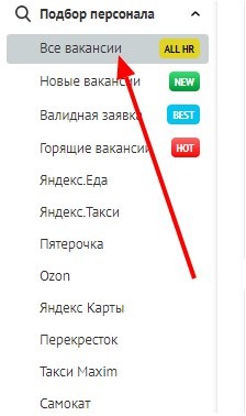 Переходим в раздел подбор персонала, жмем все вакансии
