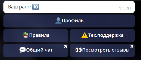 Но на чем же основывается сам принцип заработка? Заработок основывается на приглашении людей по своей партнерской программе,и просто подписывать их под себя. За каждый купленный ранг вашим рефералом вы получаете 50% дохода от стоимости ранга, чем выше ранг тем больше вы сможете заработать,в данный момент в боте есть 10 рангов, стоимость 10 ранга 5120 рублей, ваш доход за каждый 10 проданный ранг 2560 рублей. По сути вы покупаете товар, и просто перепродаете неограниченное количество раз своим партнерам. Но у вас наверняка вопрос,а как же мне находить людей и перепродавать товар?