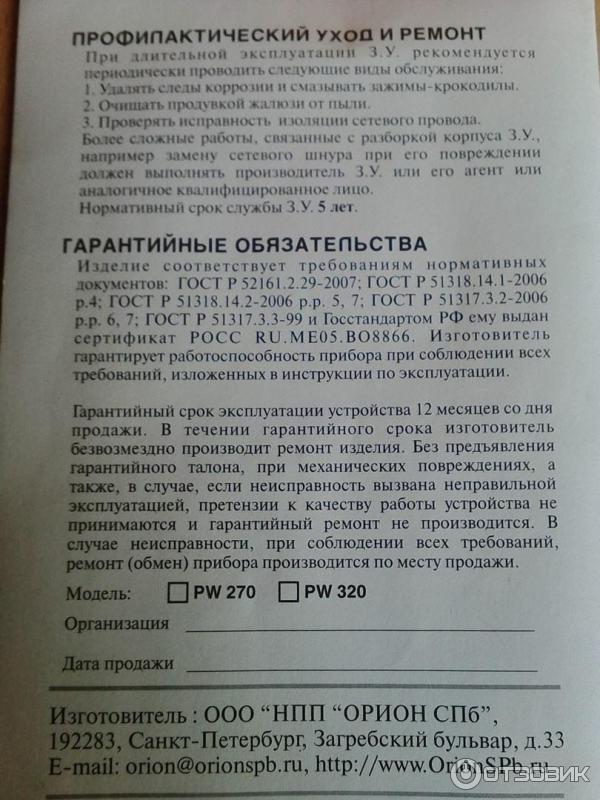 Зарядка орион инструкция 111 фотографий