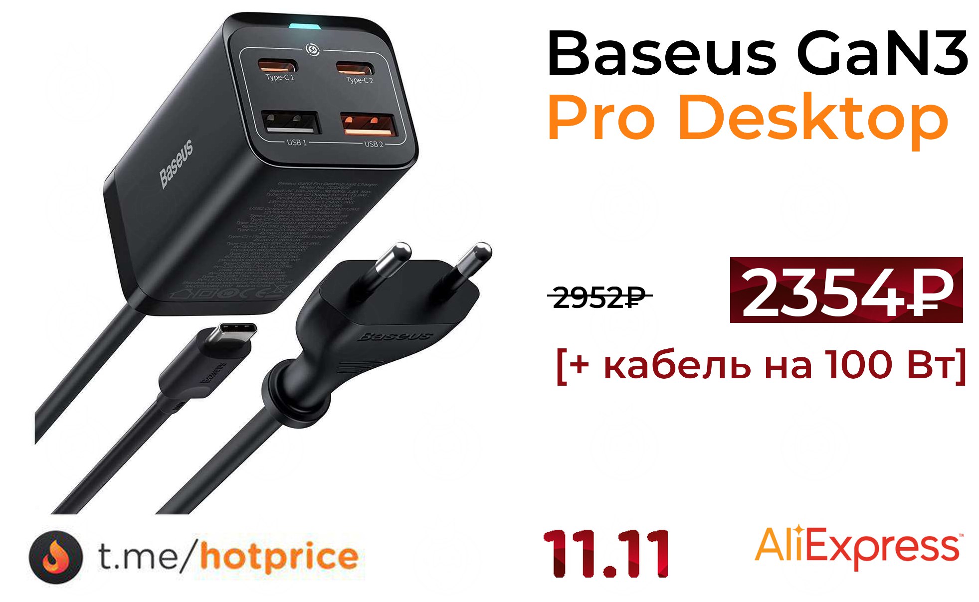 Зарядное устройство baseus gan3 pro