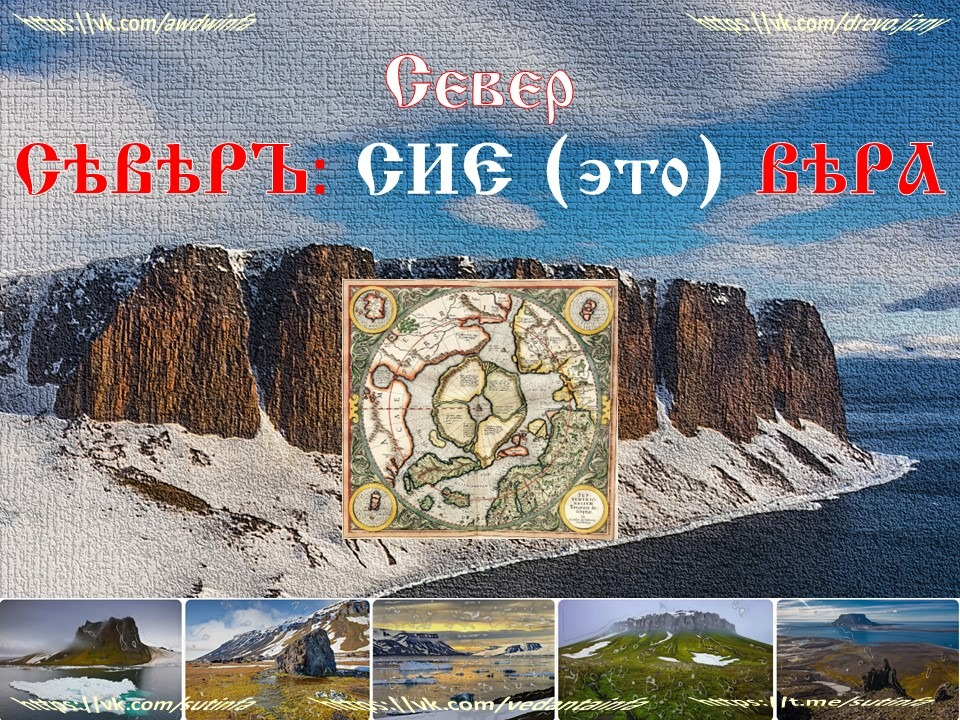 СѣВѣРЪ: СИЕ (это) ВѣРА. И этим всё сказано! Именно на северном оконечье (полюсе) Мидгарда Род Д,АРА, массово прибывший на новую землю 460,5 тысяч лет назад, выстроил земной символ Асгарда Небесного – град Асгард Даарийский, трижды отразившийся в земном Бытии РАСы. Каменное коло Даарии (дара Богов), разграниченное четырьмя великими реками, как укрощенным кресом (крестом), вместило в себя ещё три великих Рода: Род Х,АРА (268,3 тысяч лет назад), Род СВАГА (206,1 тысяч лет назад) и Род ТУЛЕ (180,2 тысячи лет назад). И ещё 74 тысячи лет будет выситься священный Белый Остров (Шветадвипа – восточных учений), пока разбуженный крес ---огнь не погубит его в водах Молочного океана. Древнейшая эпоха (по Дёмину) жизни Рода Нашего на Мидгарде закончилась.