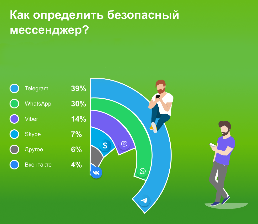 VK Messenger и Skype оказались самыми небезопасными каналами для передачи данных. Оба мессенджера не поддерживают электронную почту, требуют полноценной регистрации, а также не имеют возможности отключить показ текущего статуса.
