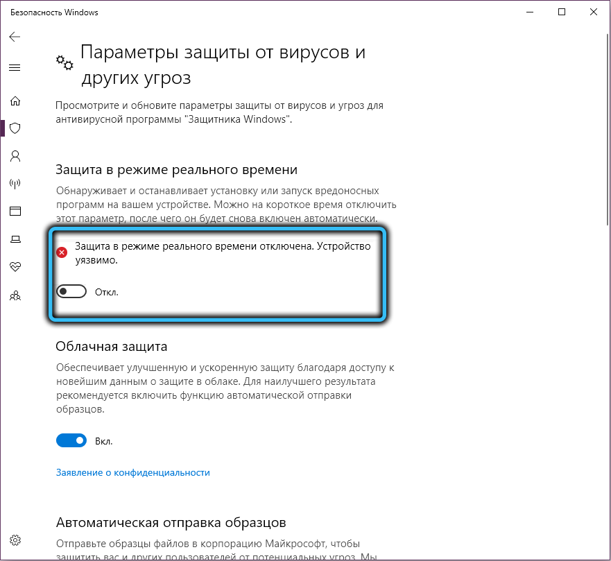 Защитник заблокировал файл