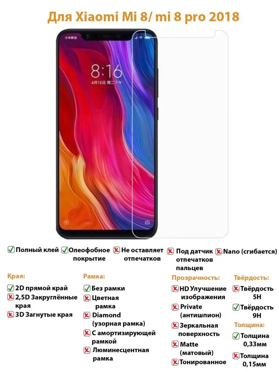 Защитное стекло xiaomi mi 8