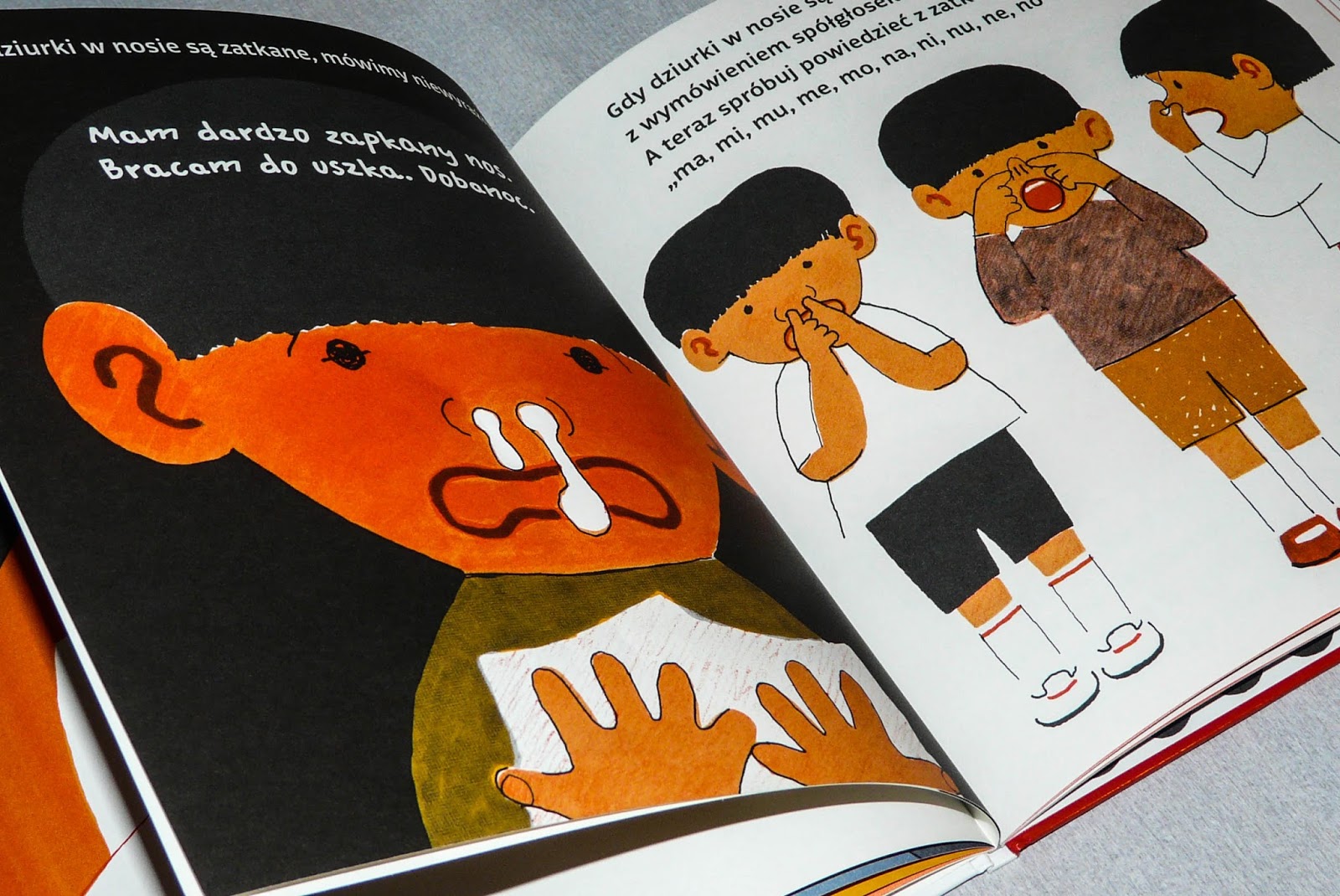 Raz zatkana jedna, a raz druga dziurka w nosie .