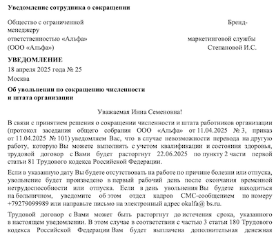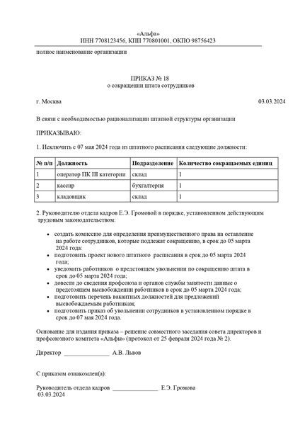 Заведующий сокращение
