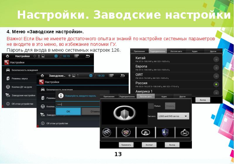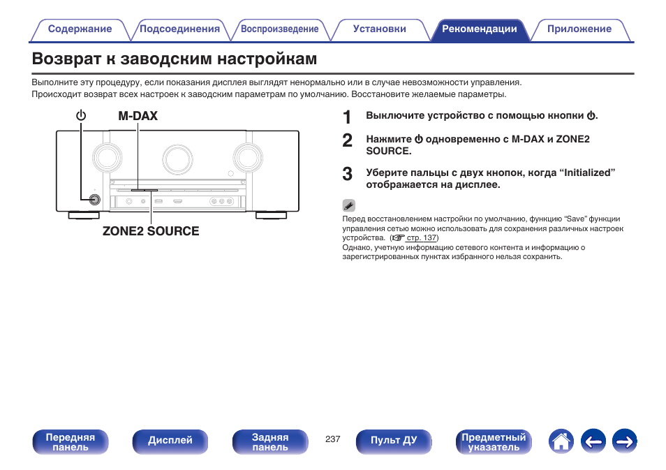 Заводские настройки acv
