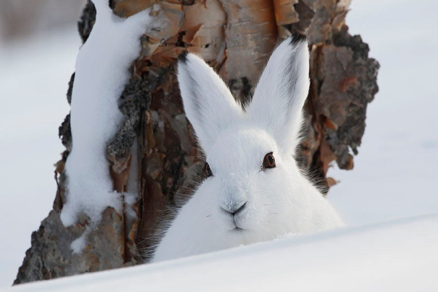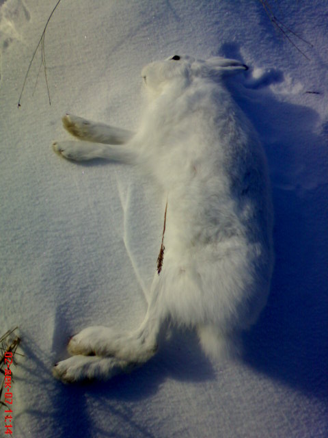 Заяц зимой живет возле деревни