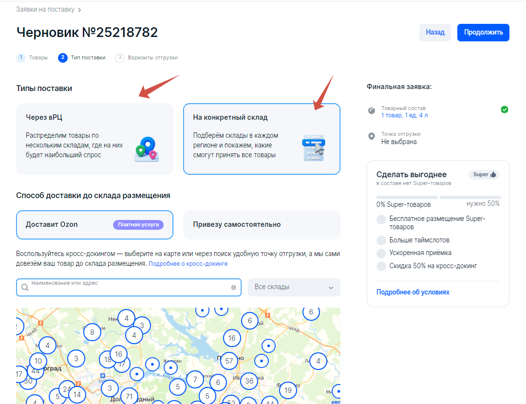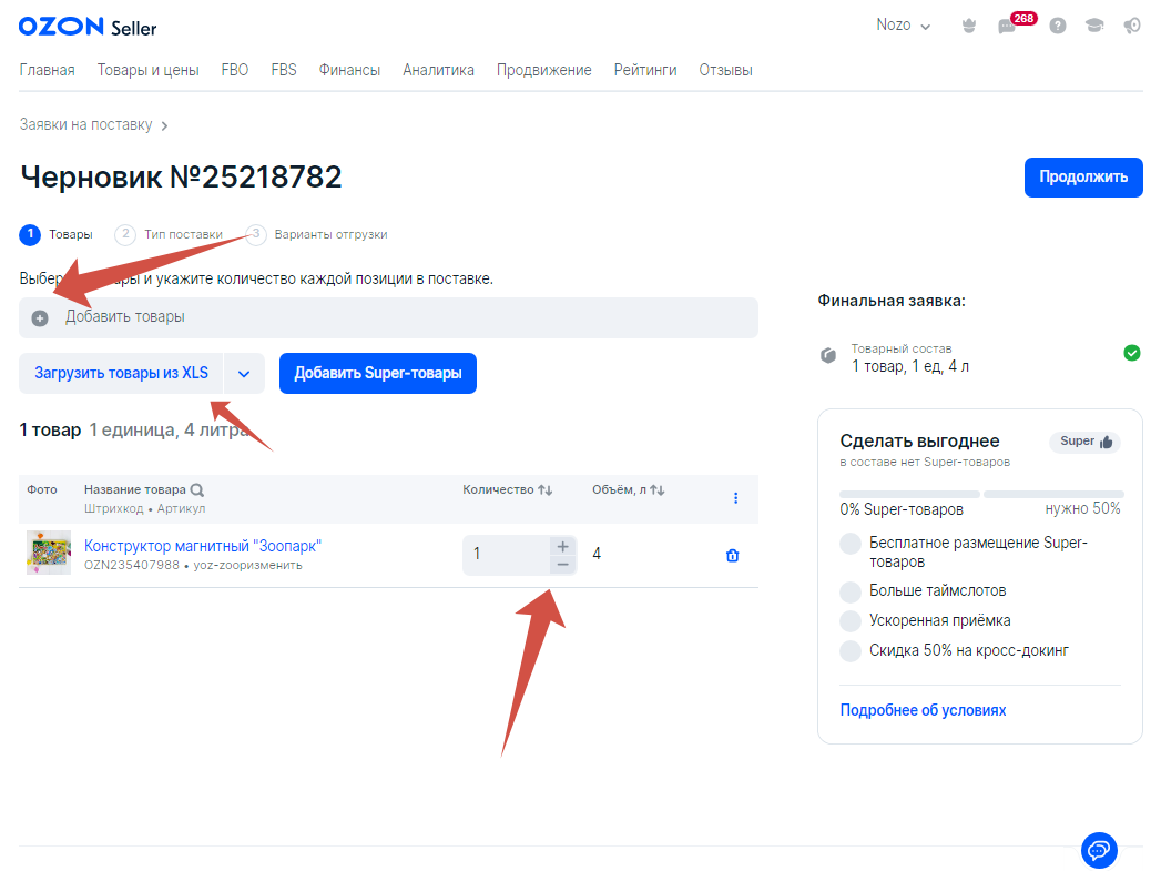 Заявка на поставку озон