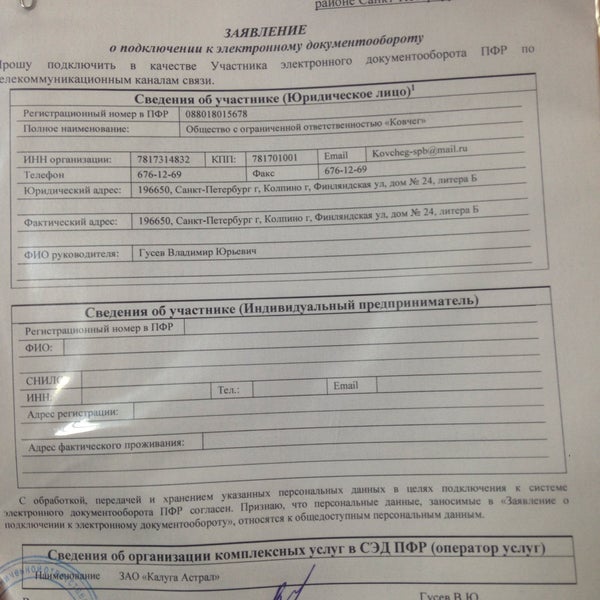 Заявление на эдо пфр