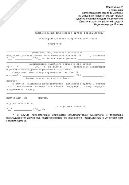 Заявление на исполнение исполнительного листа в банк
