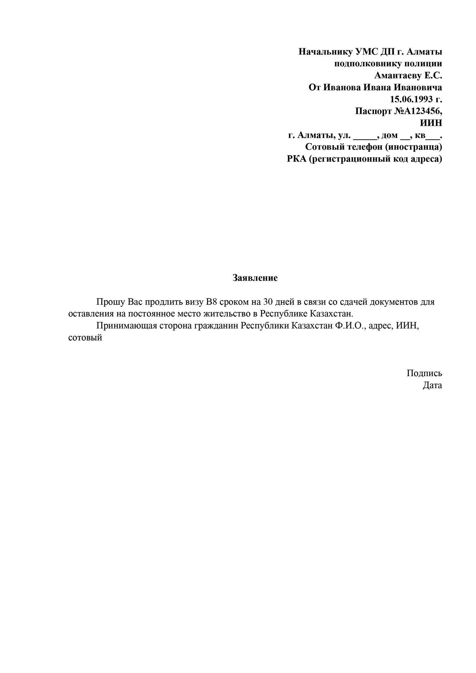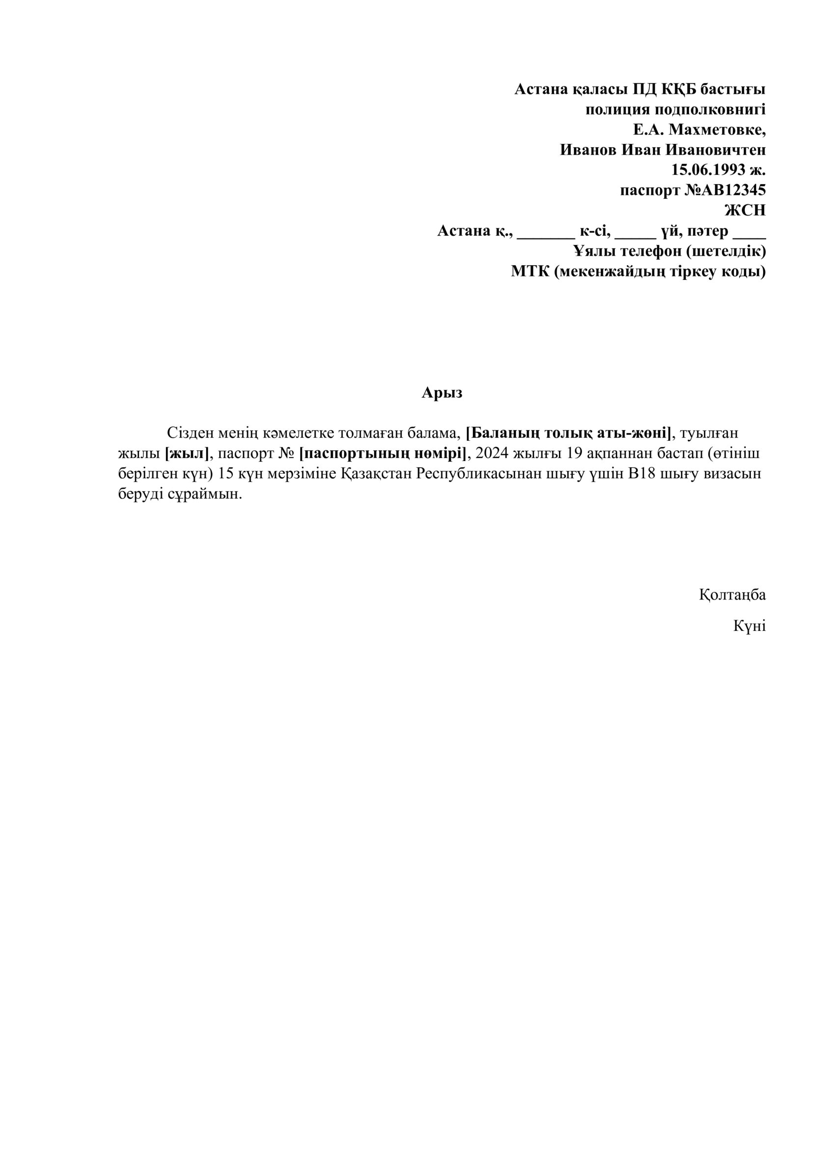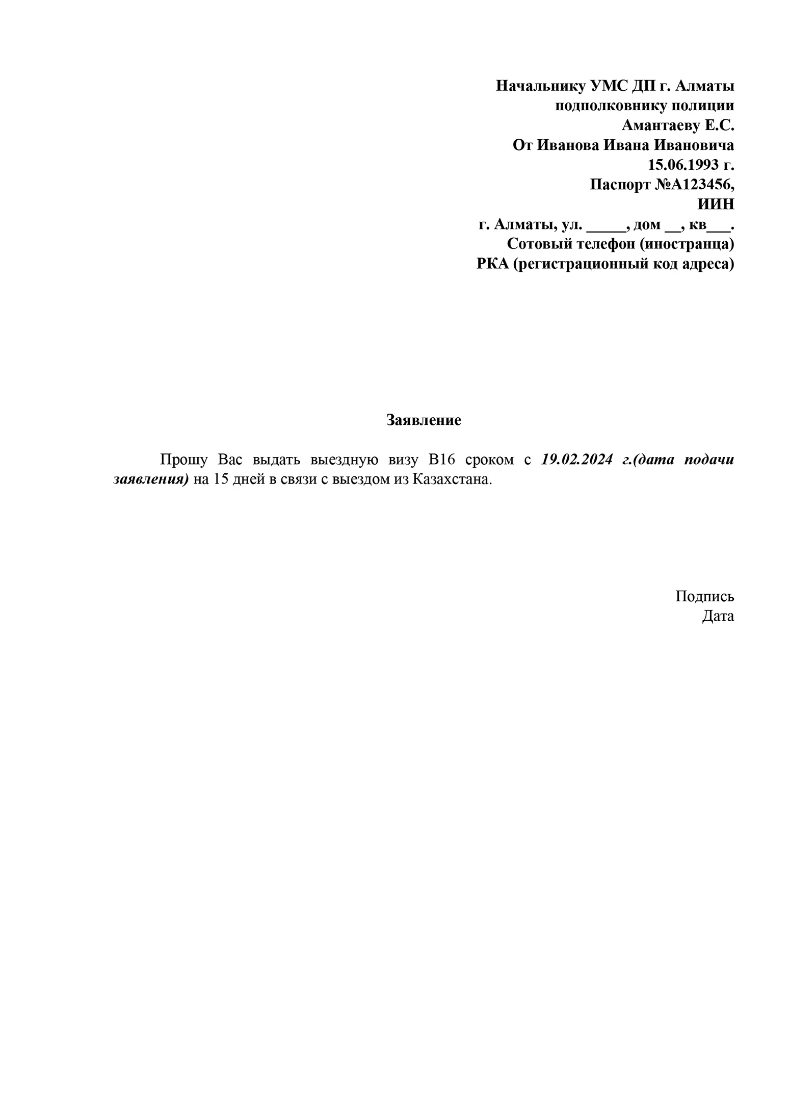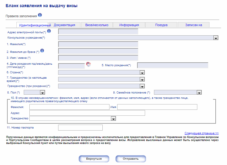 Заявление на выдачу визы