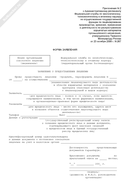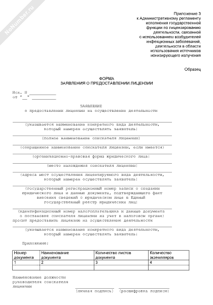 Заявление о предоставлении лицензии форма
