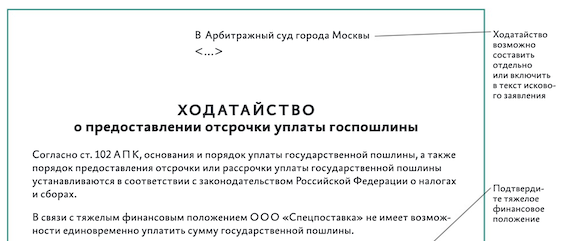Заявление о рассрочке исполнения решения госпошлина