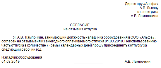 Заявление работника об отмене отпуска 118 фотографий