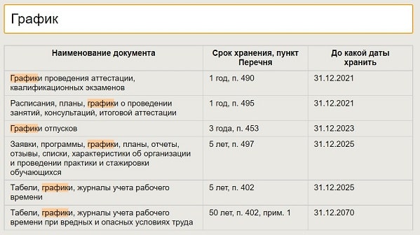 Заявление срок хранения