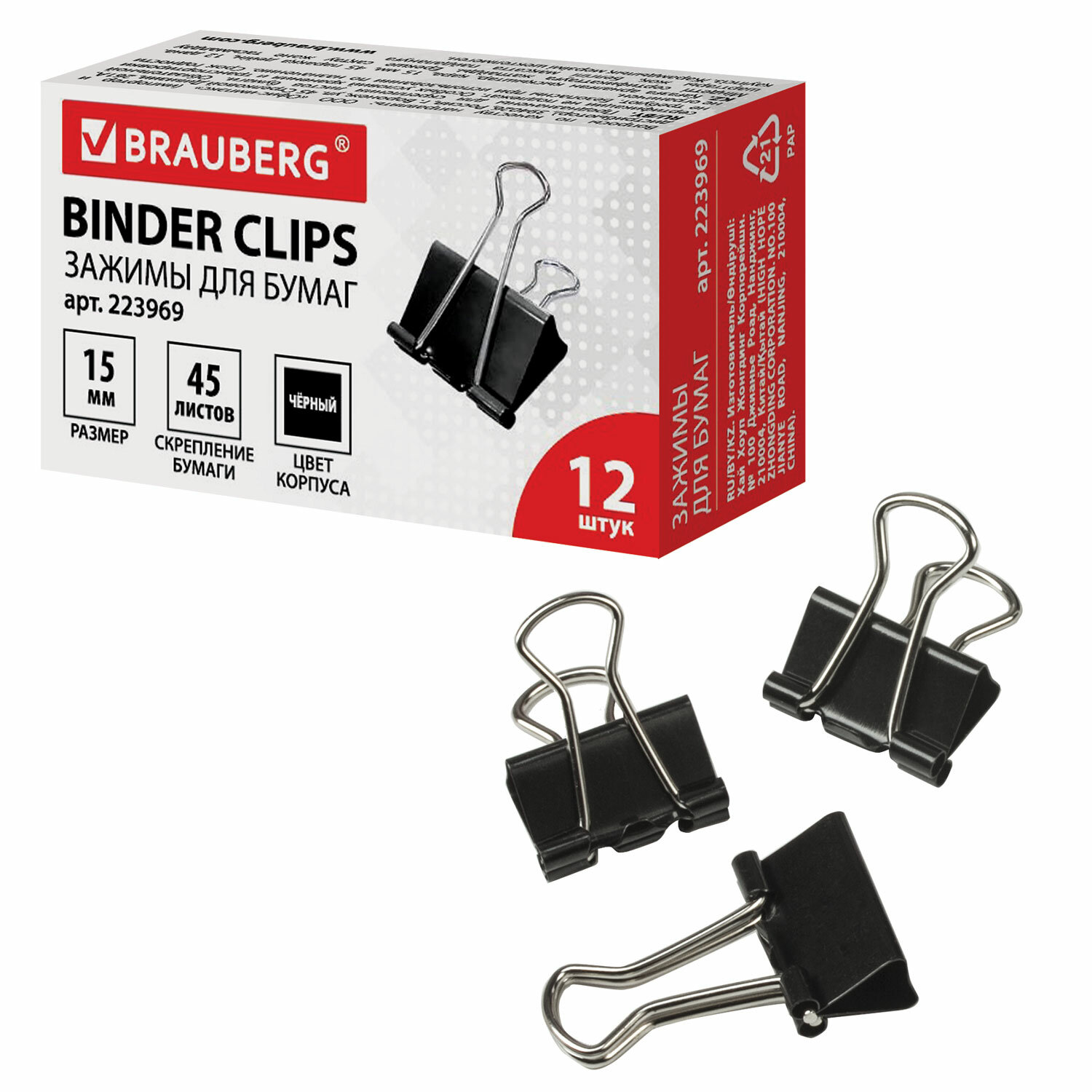 Зажим для бумаг 15мм