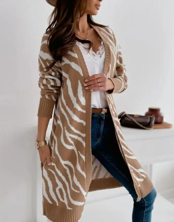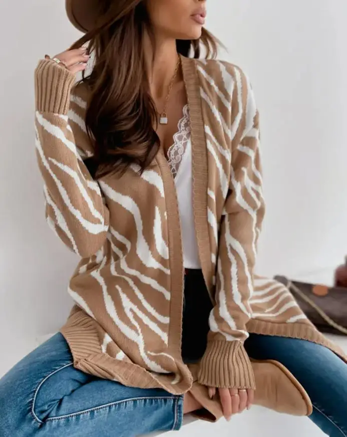 «Zebra casual clothes Stripe Pattern Open Front Longline Cardigan fashion woman coat 2022 autumn spring elegant women's Cardigan» по лучшей цене на рынке! Всего за 9$ (855рублей)