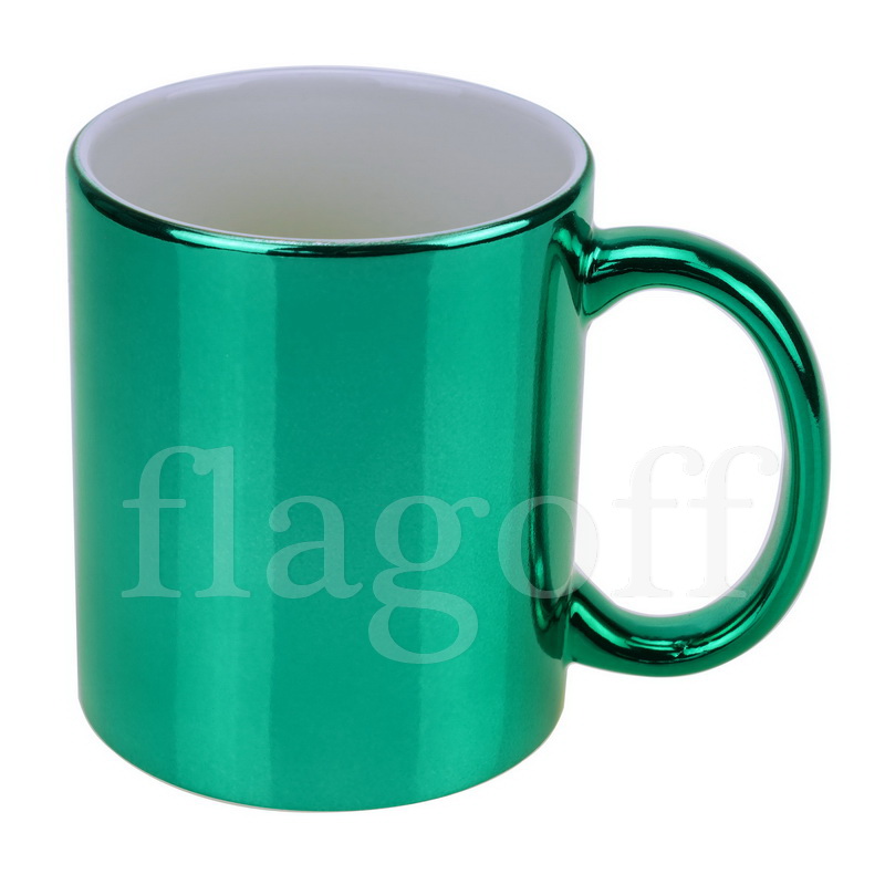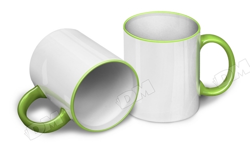 Чашка с ободком и ручкой темно-зеленого цвета . Хорошо подходит для нанесения фотографий на фоне леса или травы . Также такую кружку часто используют для печати заказов экологической тематики .