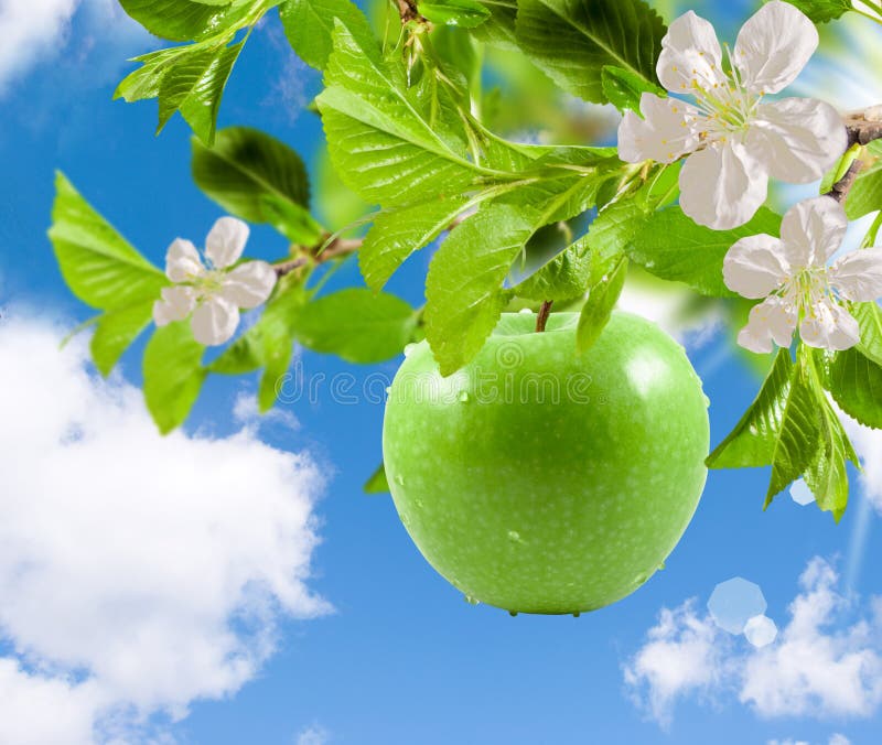 Зеленое яблоко небо