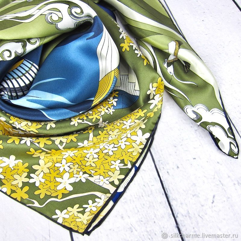 Зеленый платок с растительным принтом купить в интернет . . .