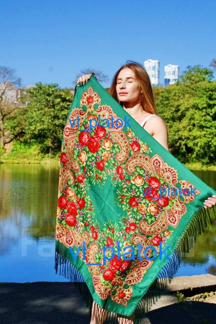 Купить недорого брендовый зеленый платок в павлопосадском стиле из тонкой шерсти с бахромой из Италии и Турции на голову, шею и плечи в интернет магазине . Каталог, цена, фото . Подарки