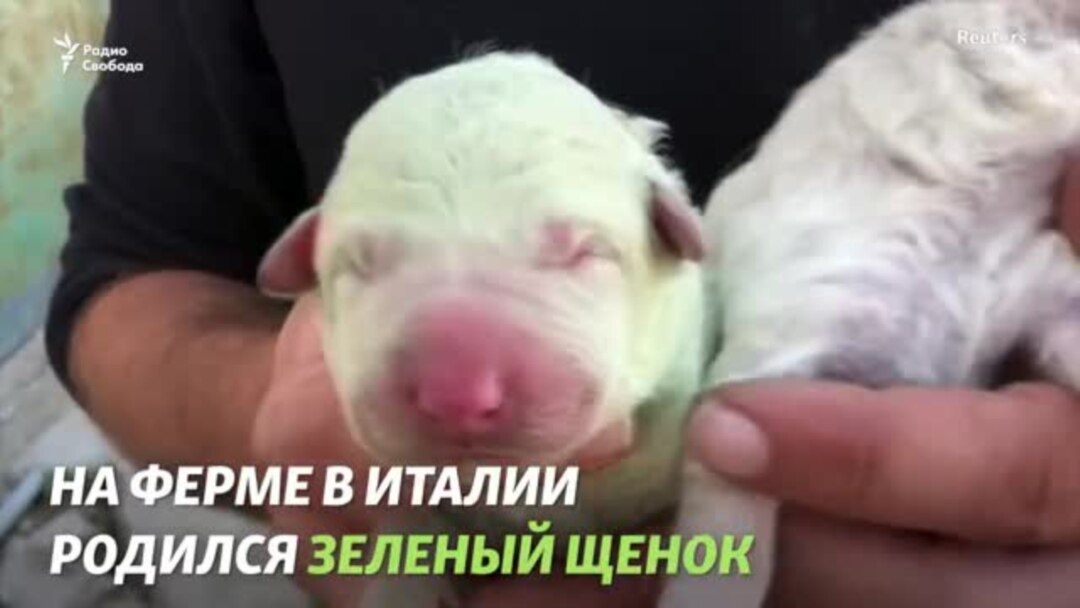 Зеленый щенок - в Италии родился редкий щенок с зеленым . . .