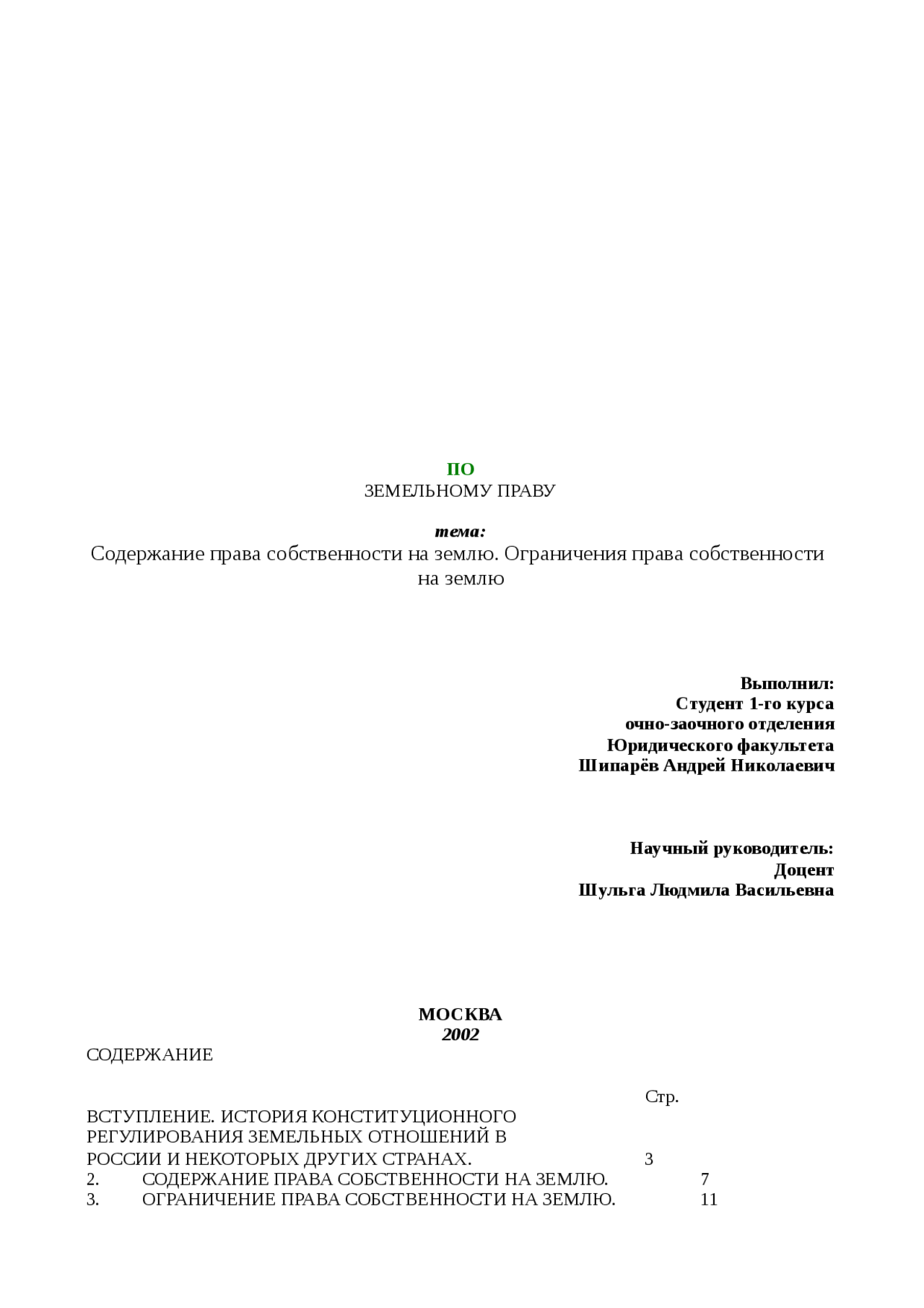Земельное право содержание