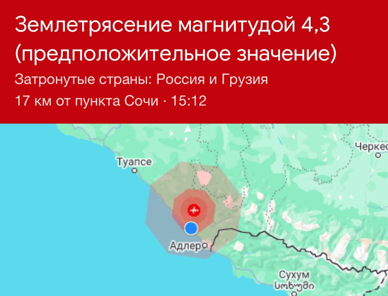 Землетрясение в сочи сейчас