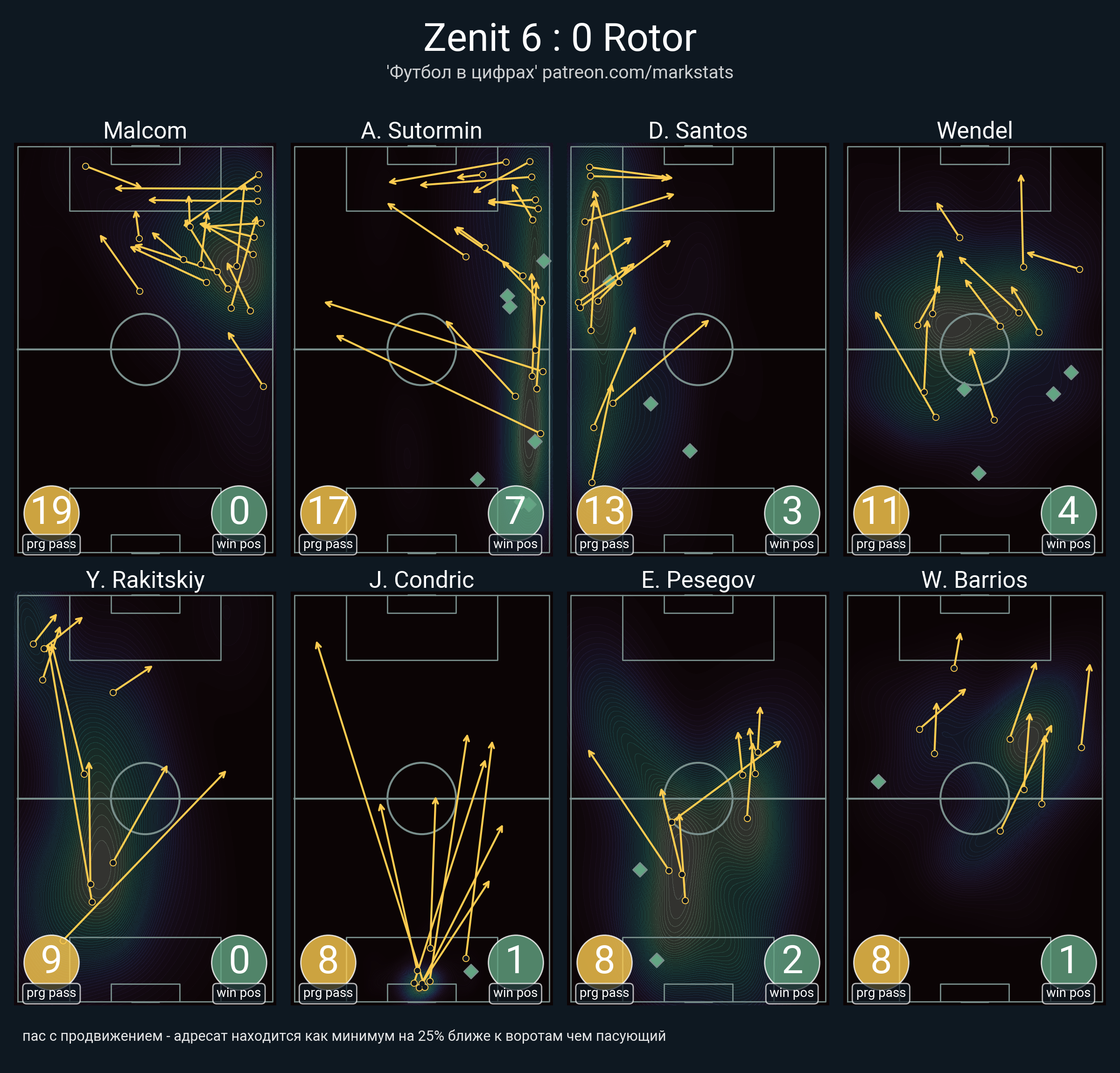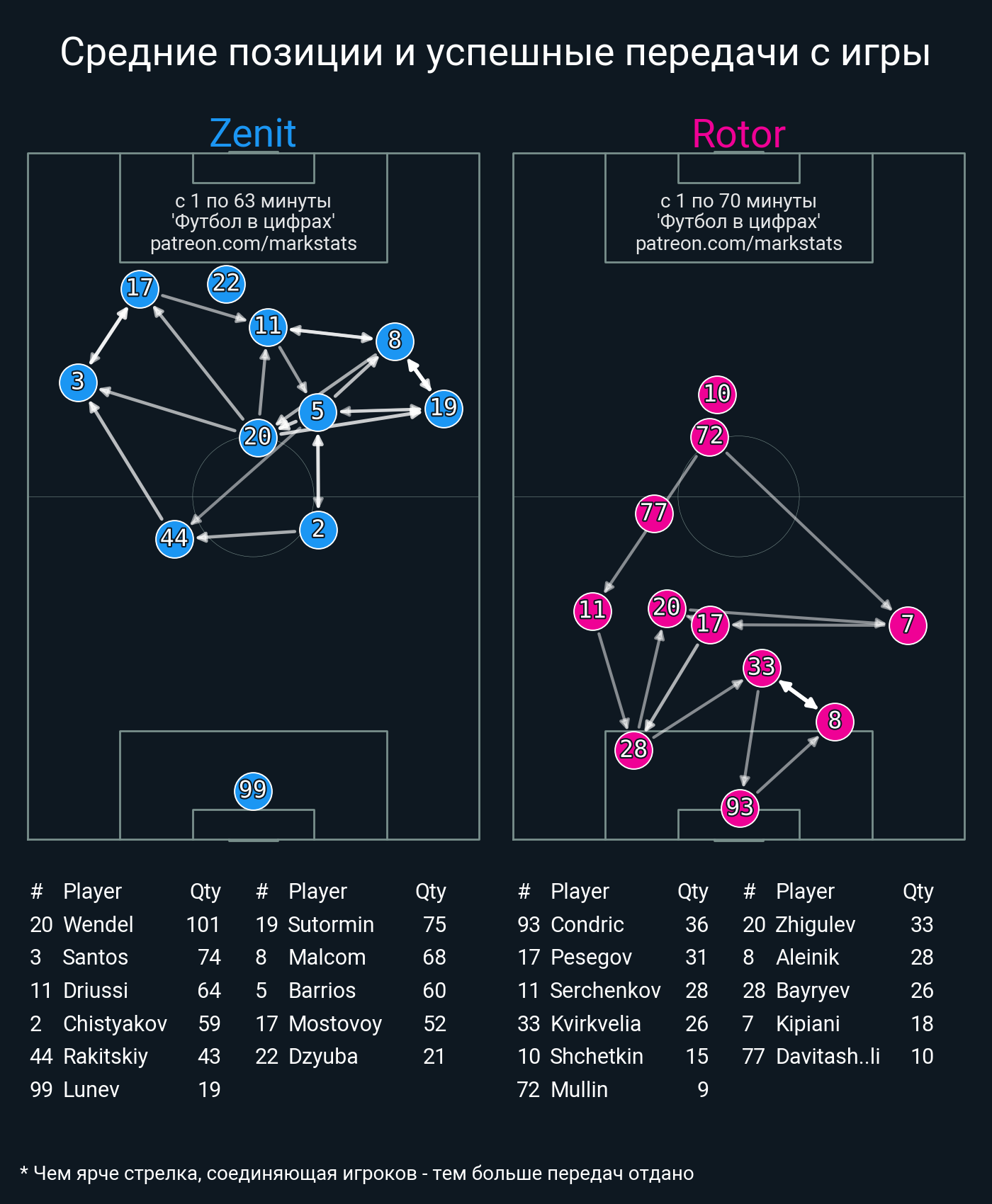 ▪ 69 успешных передач из 82 попыток (3 под удар, 17 с продвижением, 26 на трети соперника)