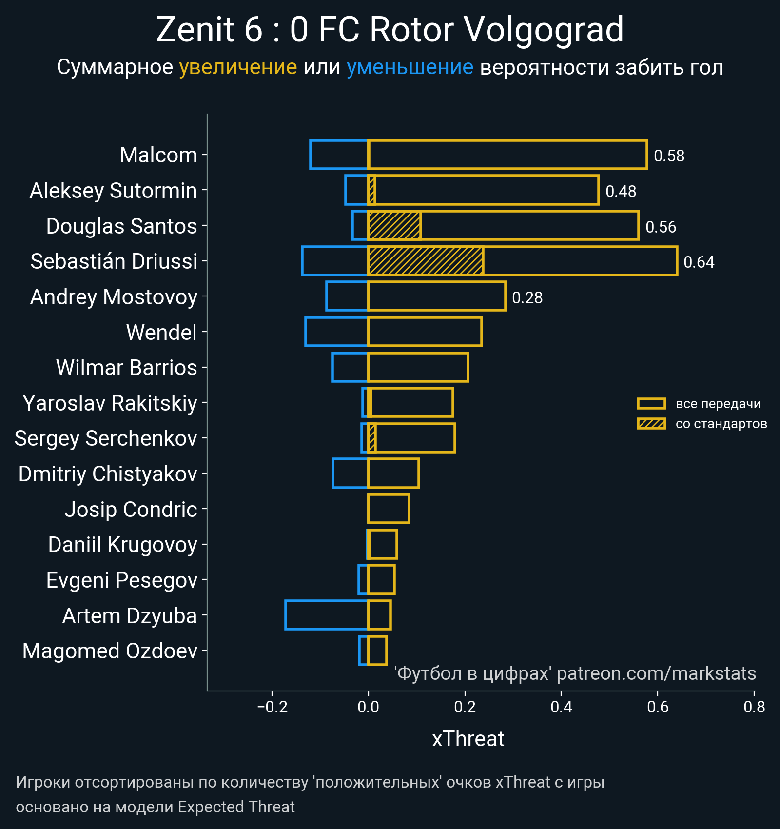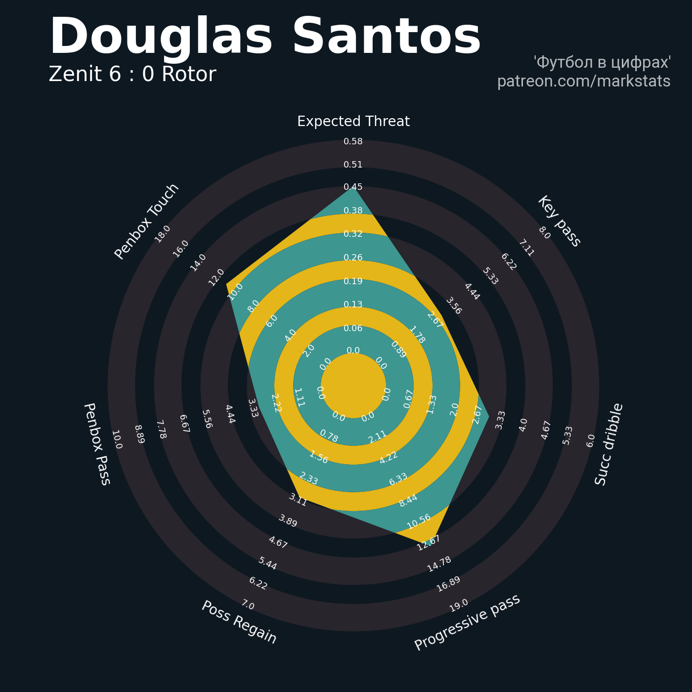 ▪ 0.45 очка xT (+0.11 со стандартов)