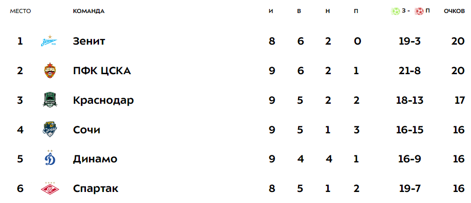 Зенит таблица 24 25