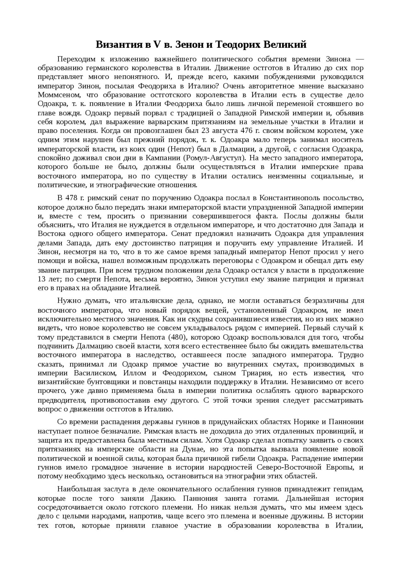 Византия в v в . Зенон и Теодорих Великий . Переходим к изложению важнейшего политического события времени Зинона — образованию германского королевства в Италии . Движение остготов в Италию до сих пор представляет . . .