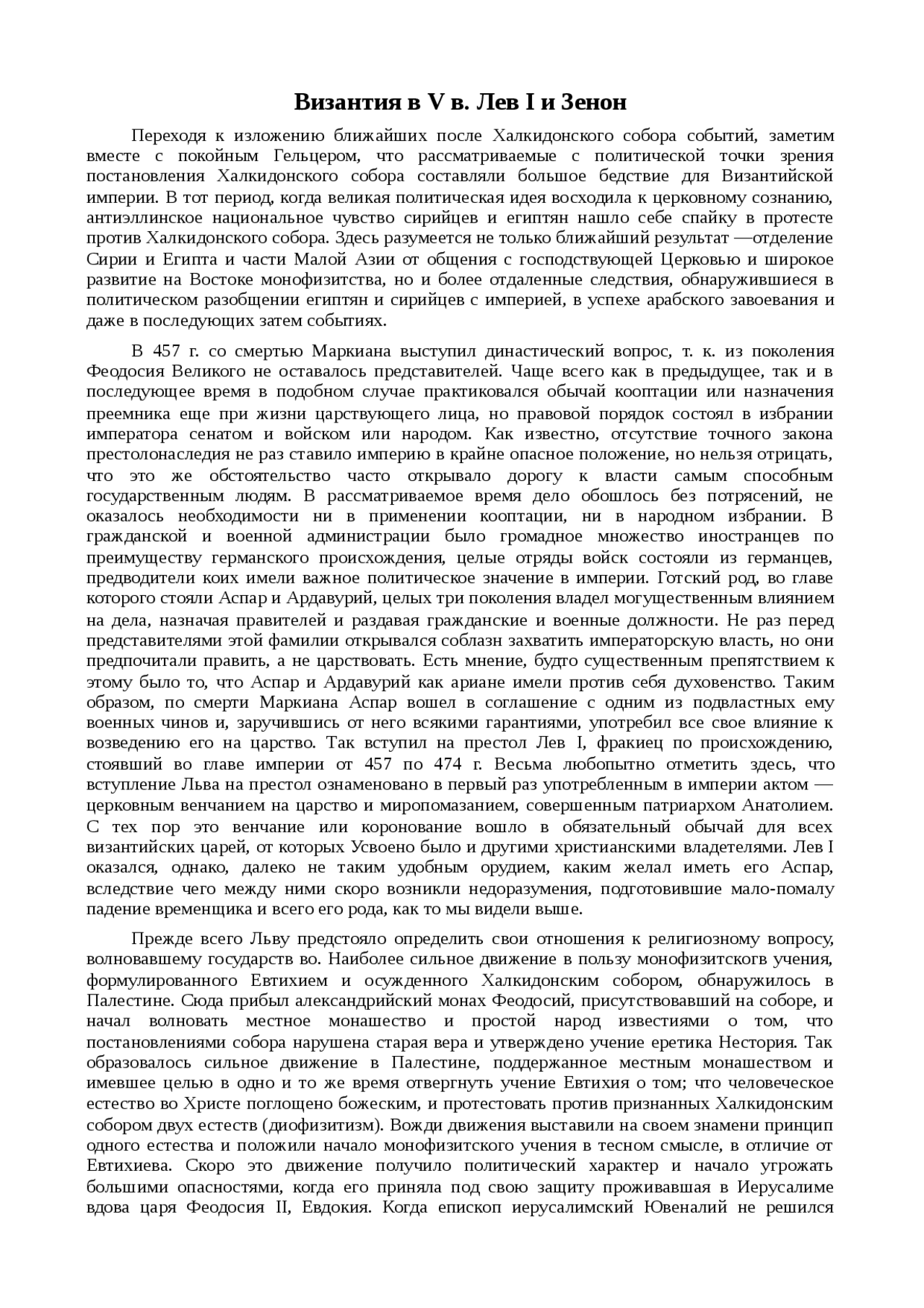 Византия в v в . Лев i и Зенон . Переходя к изложению ближайших после Халкидонского собора событий, заметим вместе с покойным Гельцером, . . .