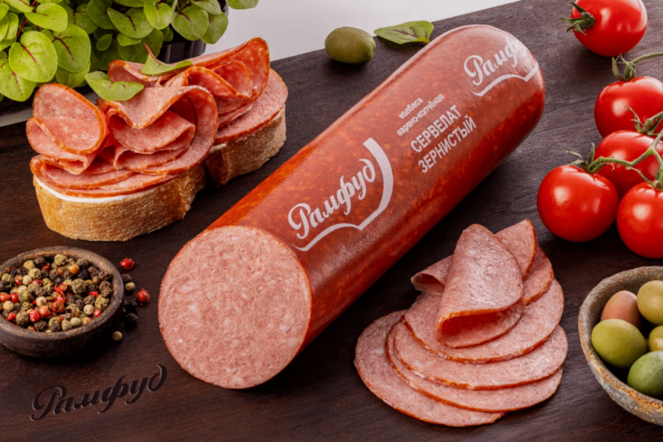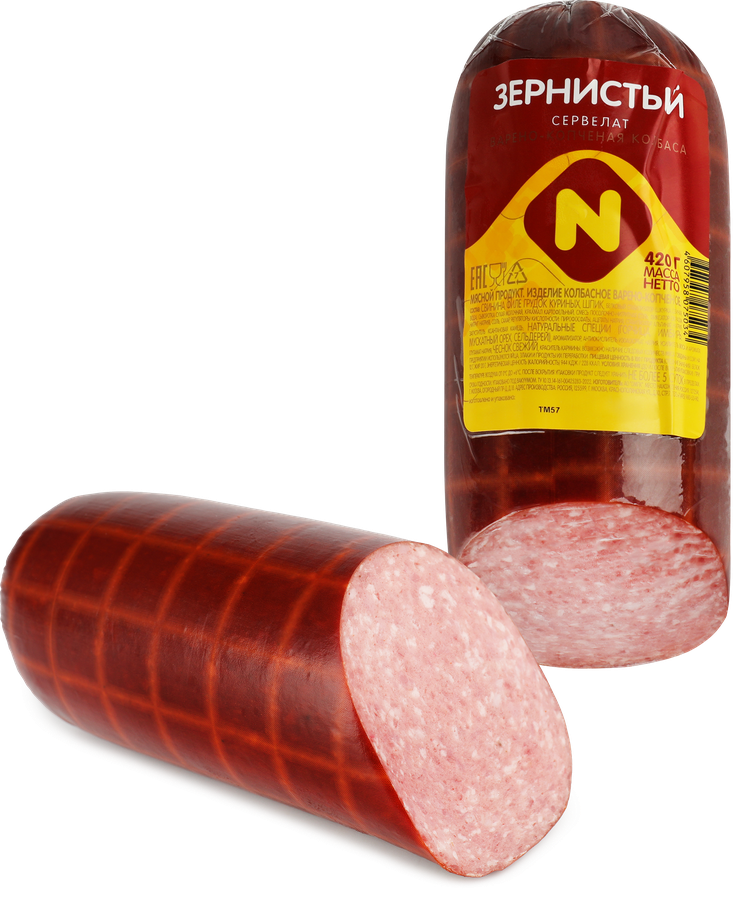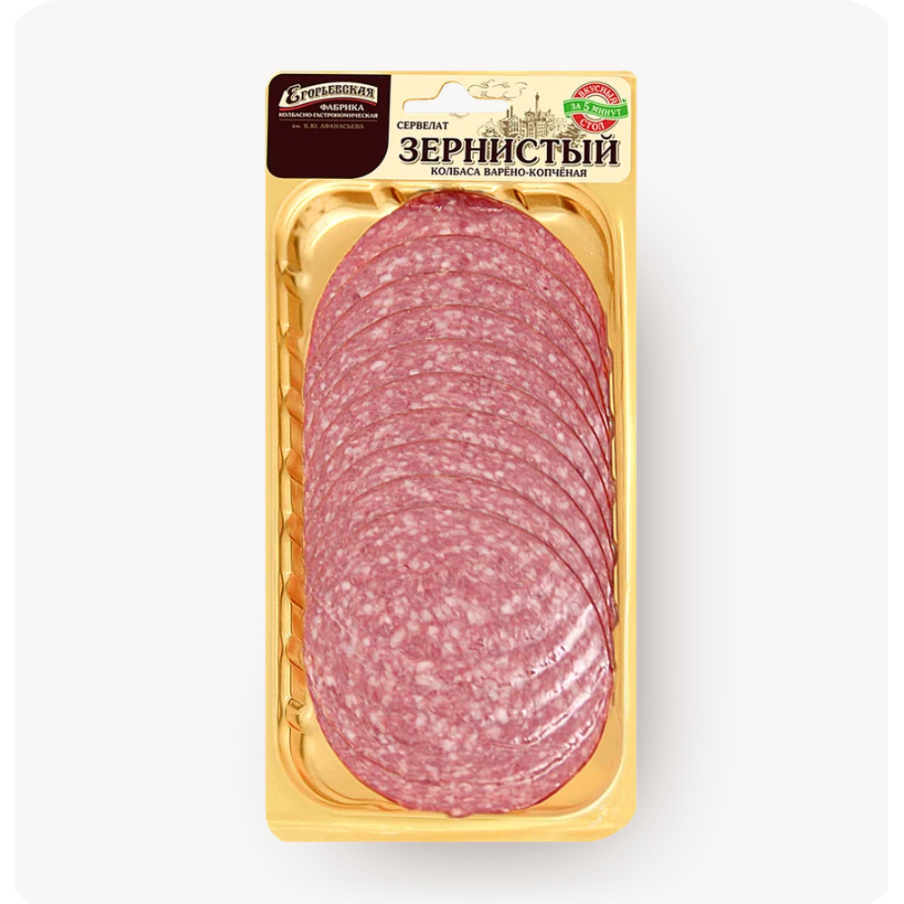 Зернистая копченая колбаса