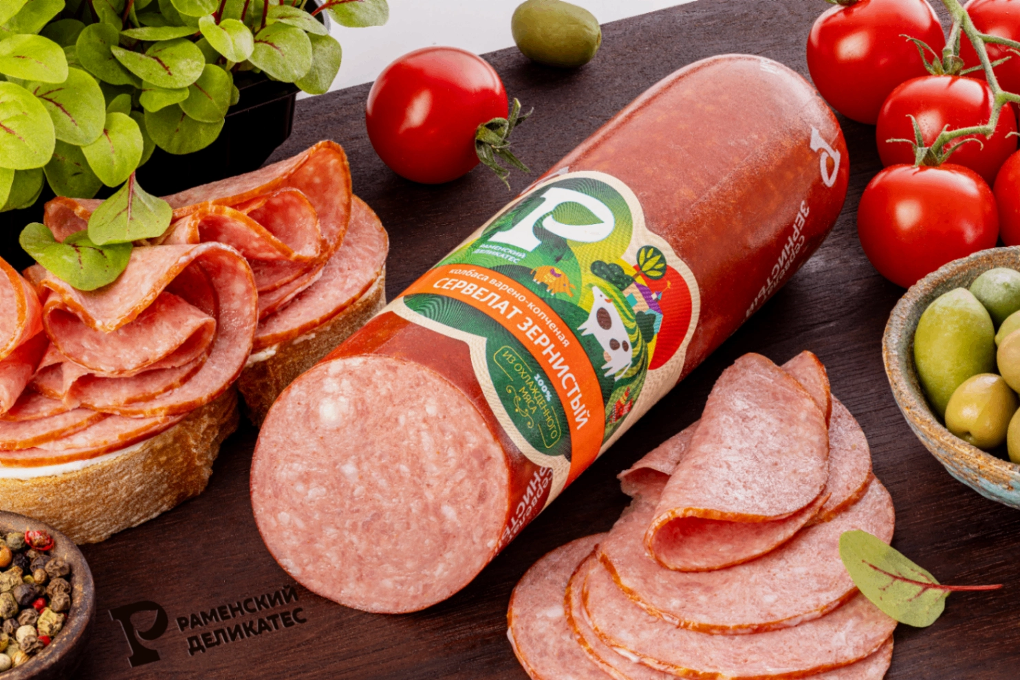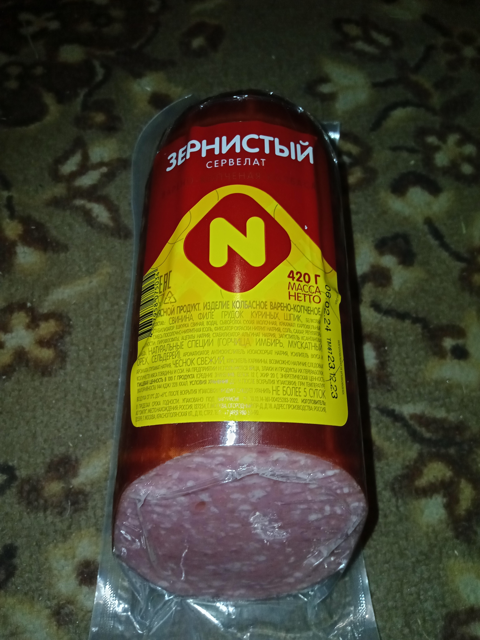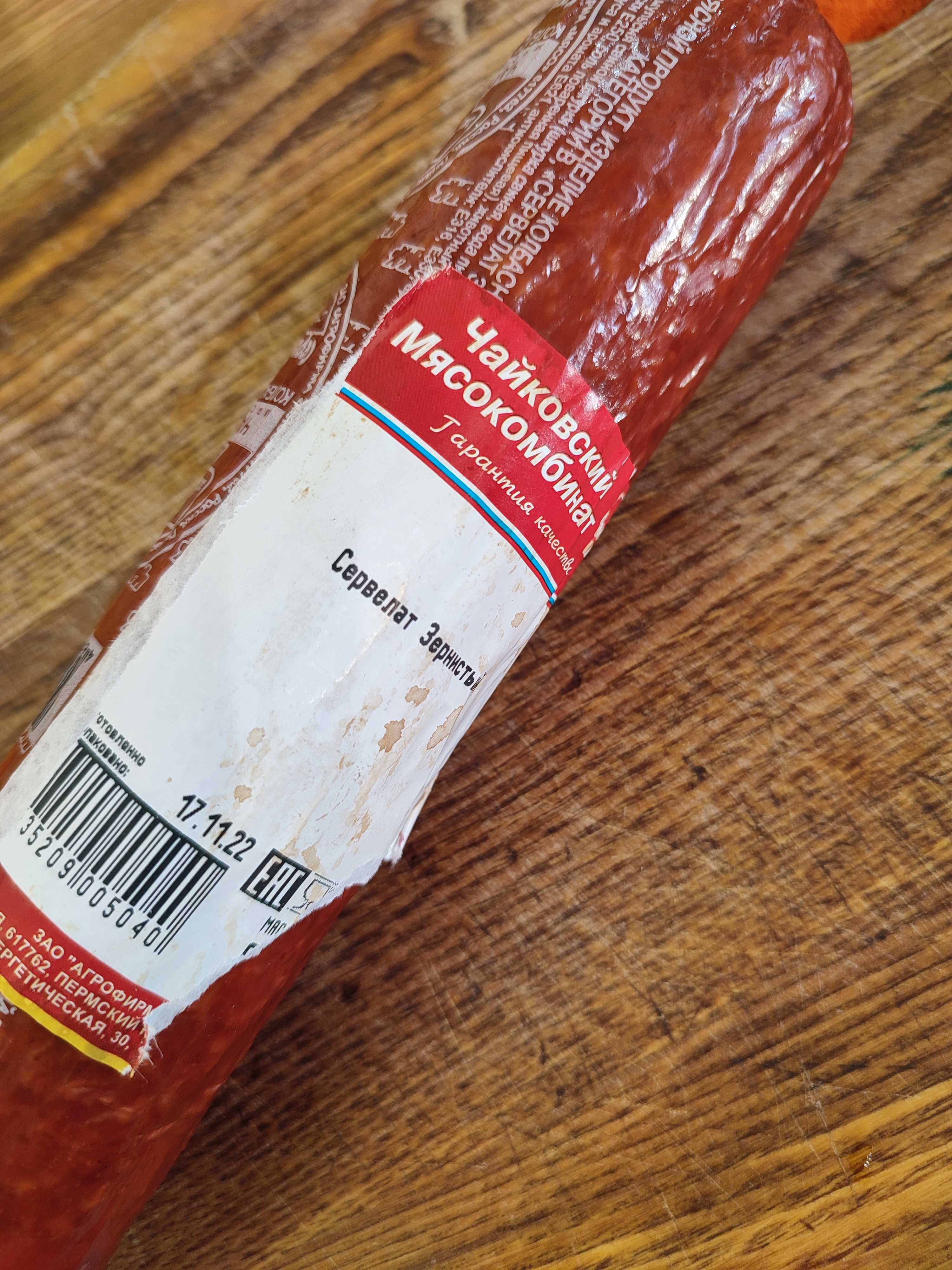 Зернистая копченая колбаса