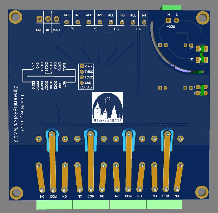 Zigbee 4х канальное реле на базе съёмного модуля с чипом CC2652p. Прародителем и вдохновителем создания данного реле является поделка от Модкам это 4х канальное реле V2 разработчик Jager.
