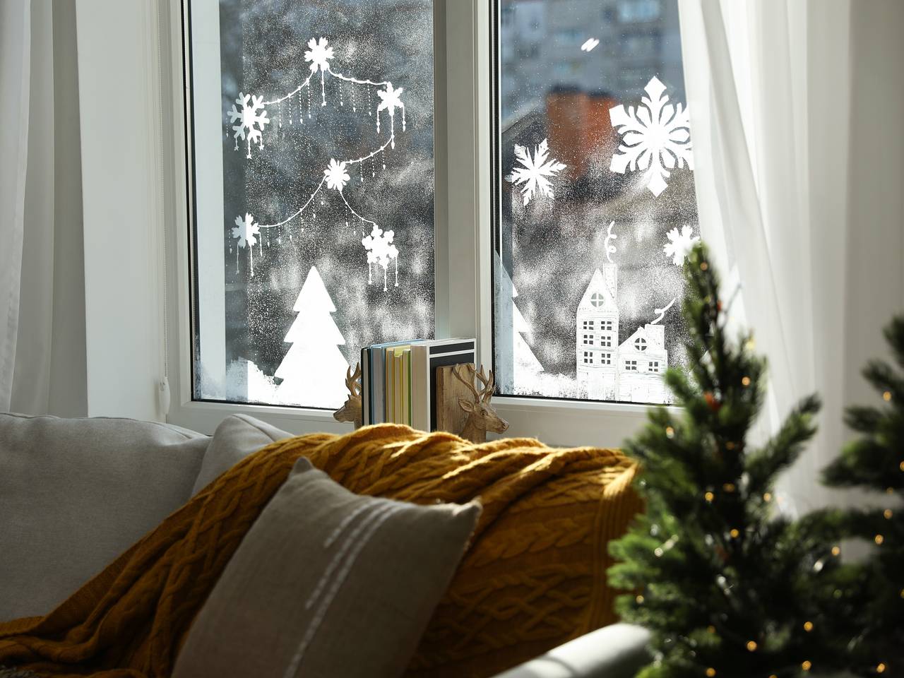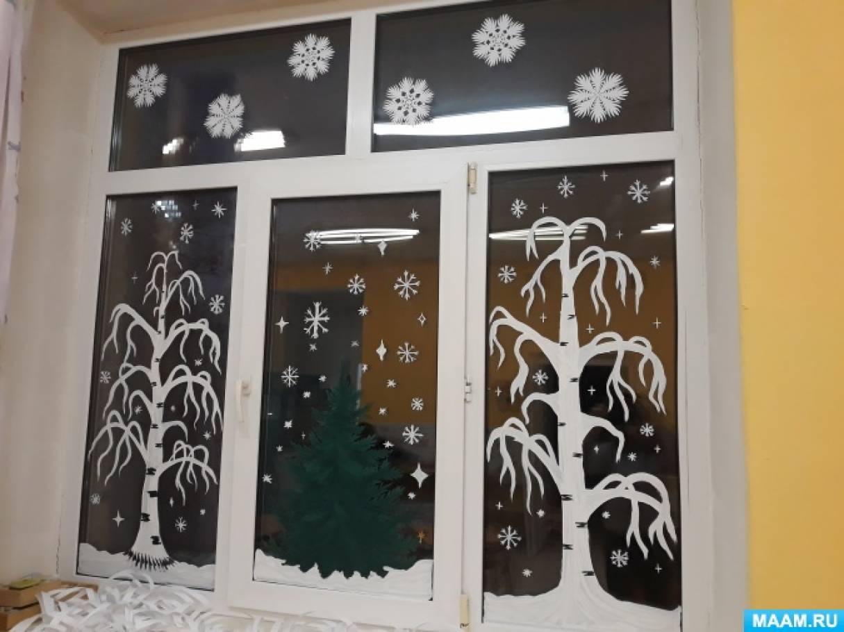 Зимнее украшение окон 110 фотографий