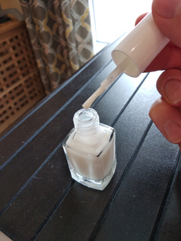 Отличное средство,держится не менее 4х дней.Это удивительно,очень довольна.Если красить в один слой,будет прозрачный цвет,в два слоя- появляется молочный оттенок.