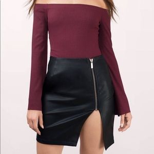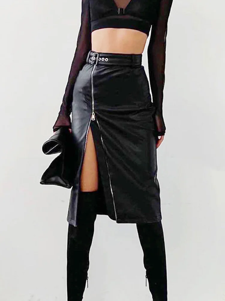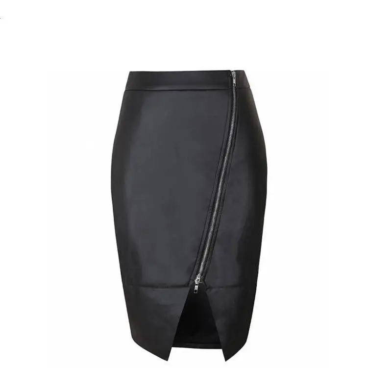 Zipper Slit Leather Skirt