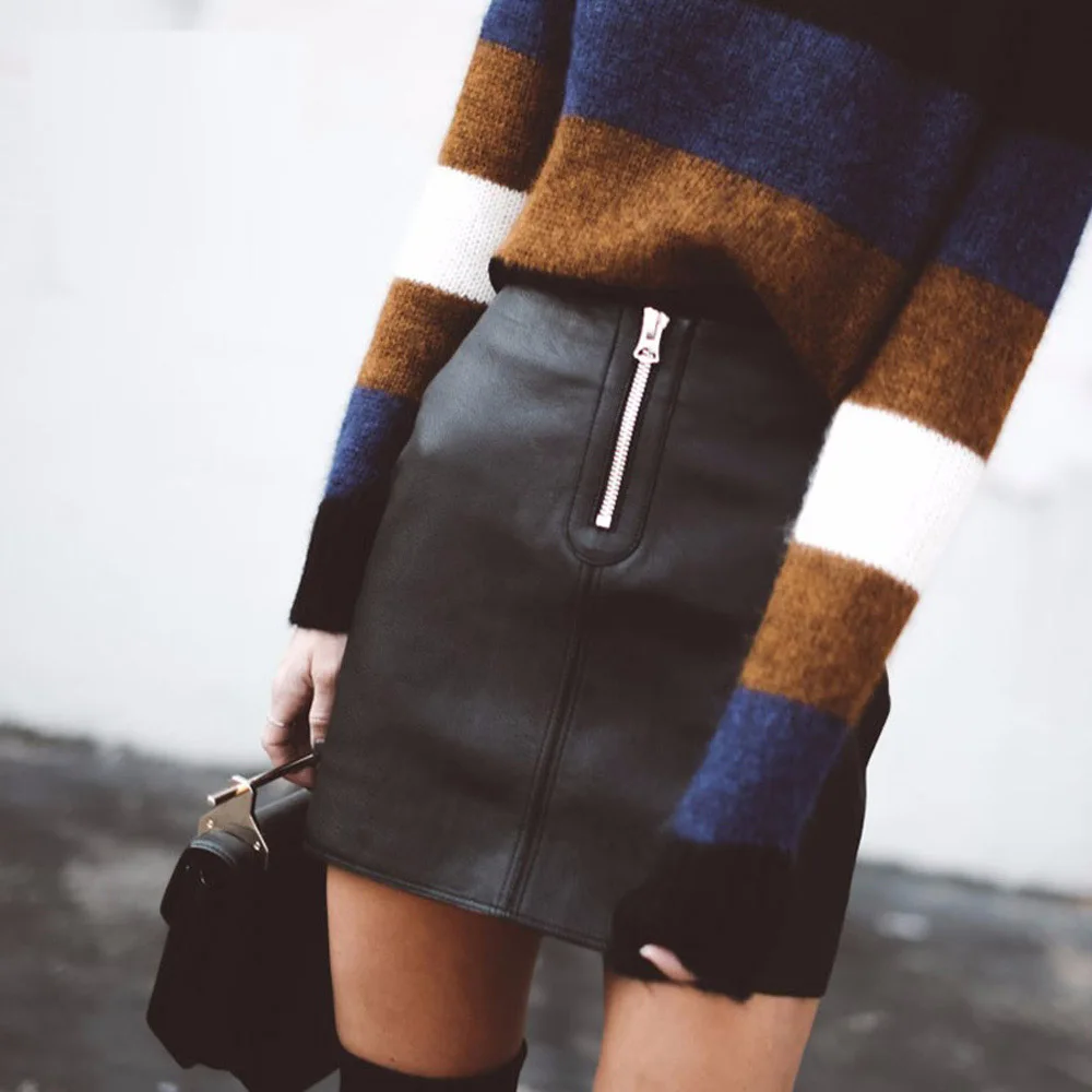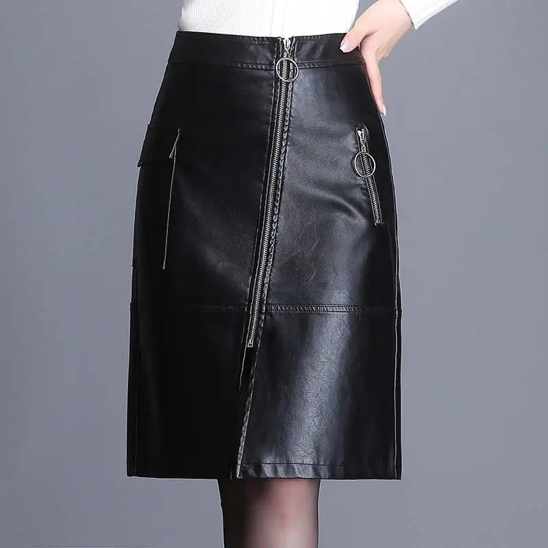 Zipper Slit Leather Skirt 164 photos